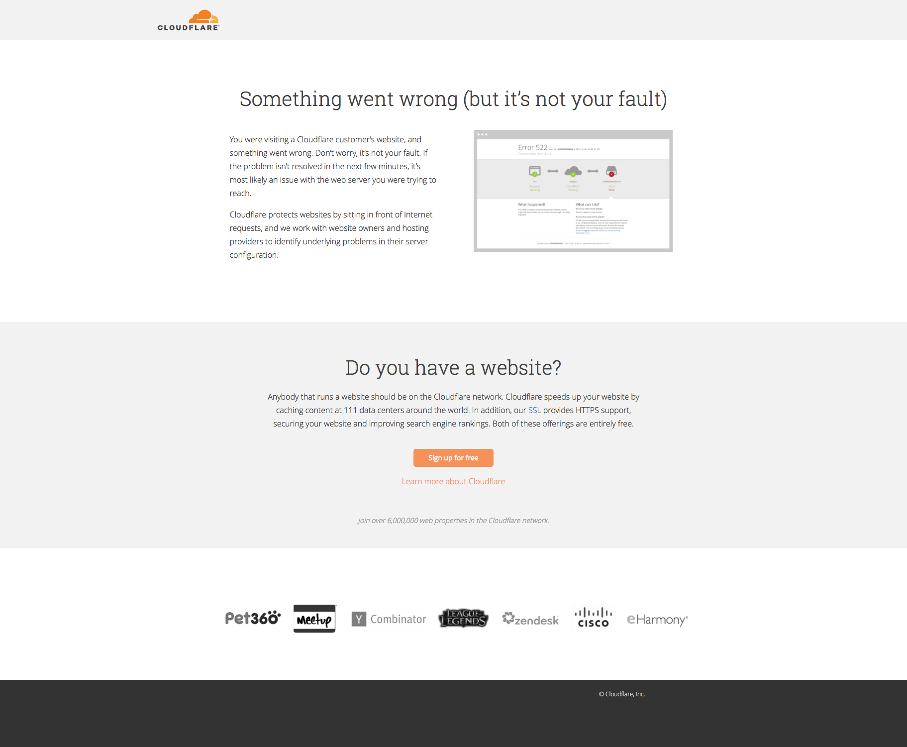 If you saw a Cloudflare error page on another site, it’s not your fault.